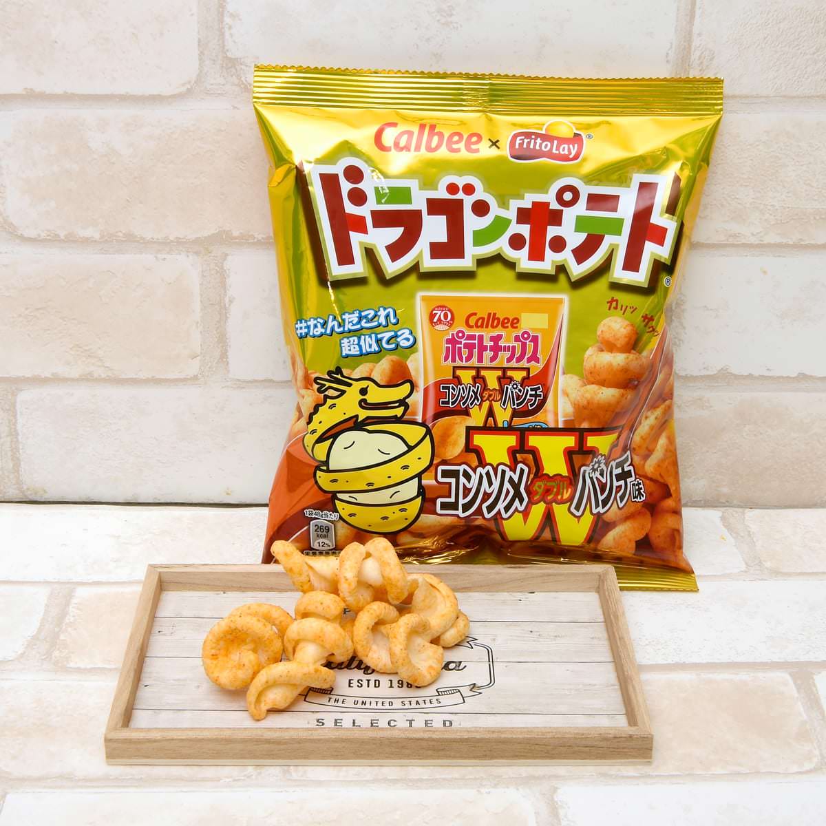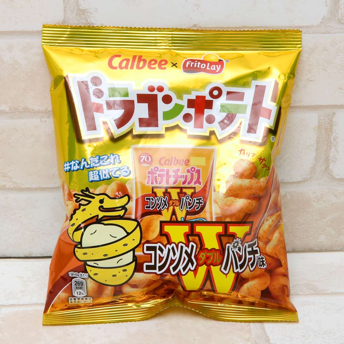 カルビーグループのジャパンフリトレーが手がけるスナック菓子「ドラゴンポテト」とカルビーの「ポテトチップス コンソメWパンチ」とのコラボ商品「ドラゴンポテト コンソメWパンチ」が登場!