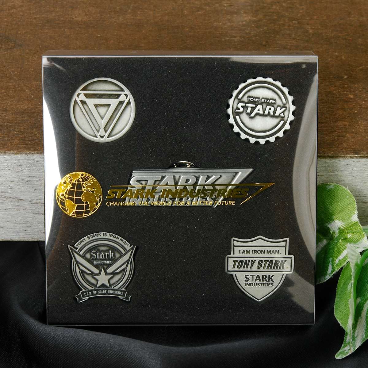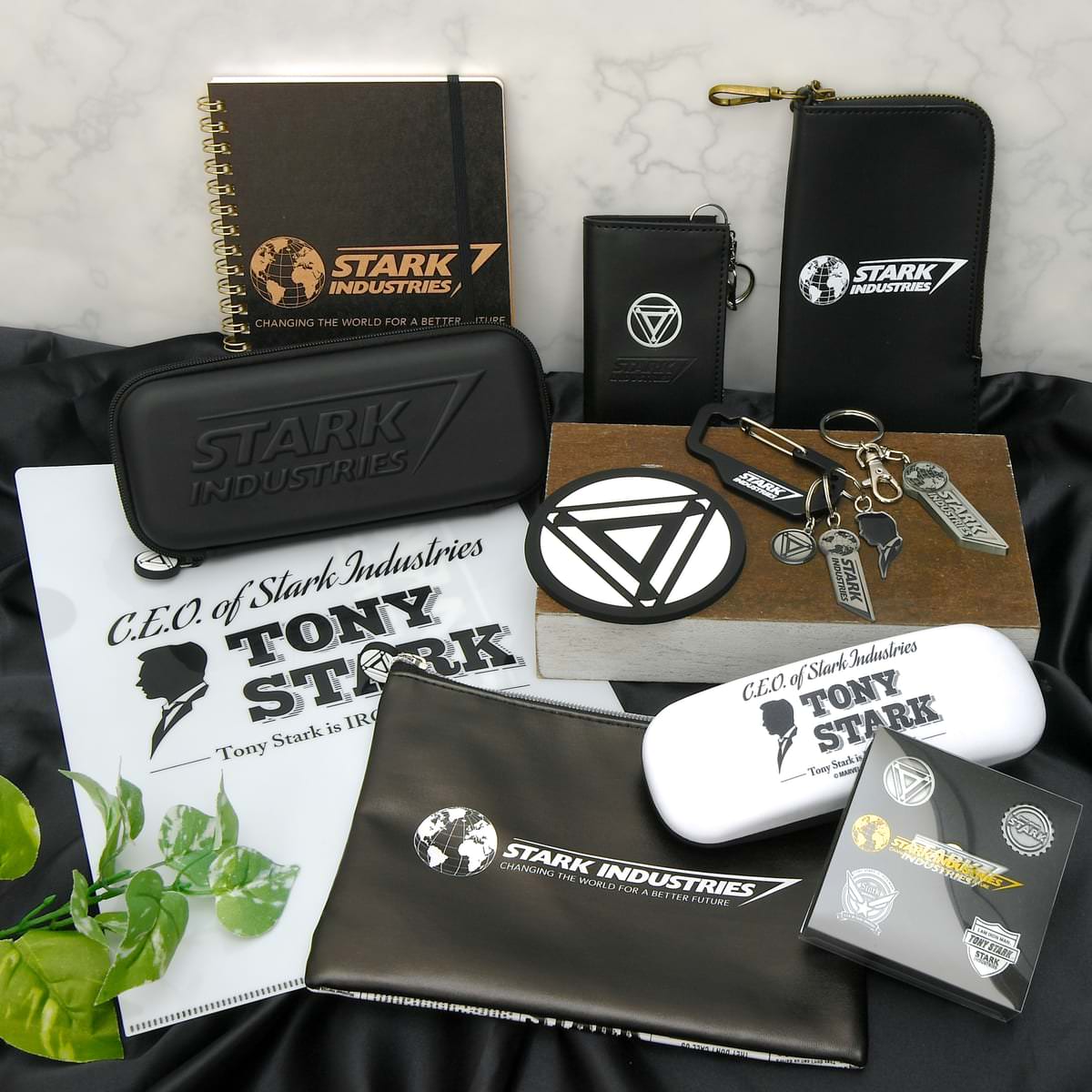 両グッズには「スターク・インダストリーズ」の社名ロゴが大きくプリントされています。