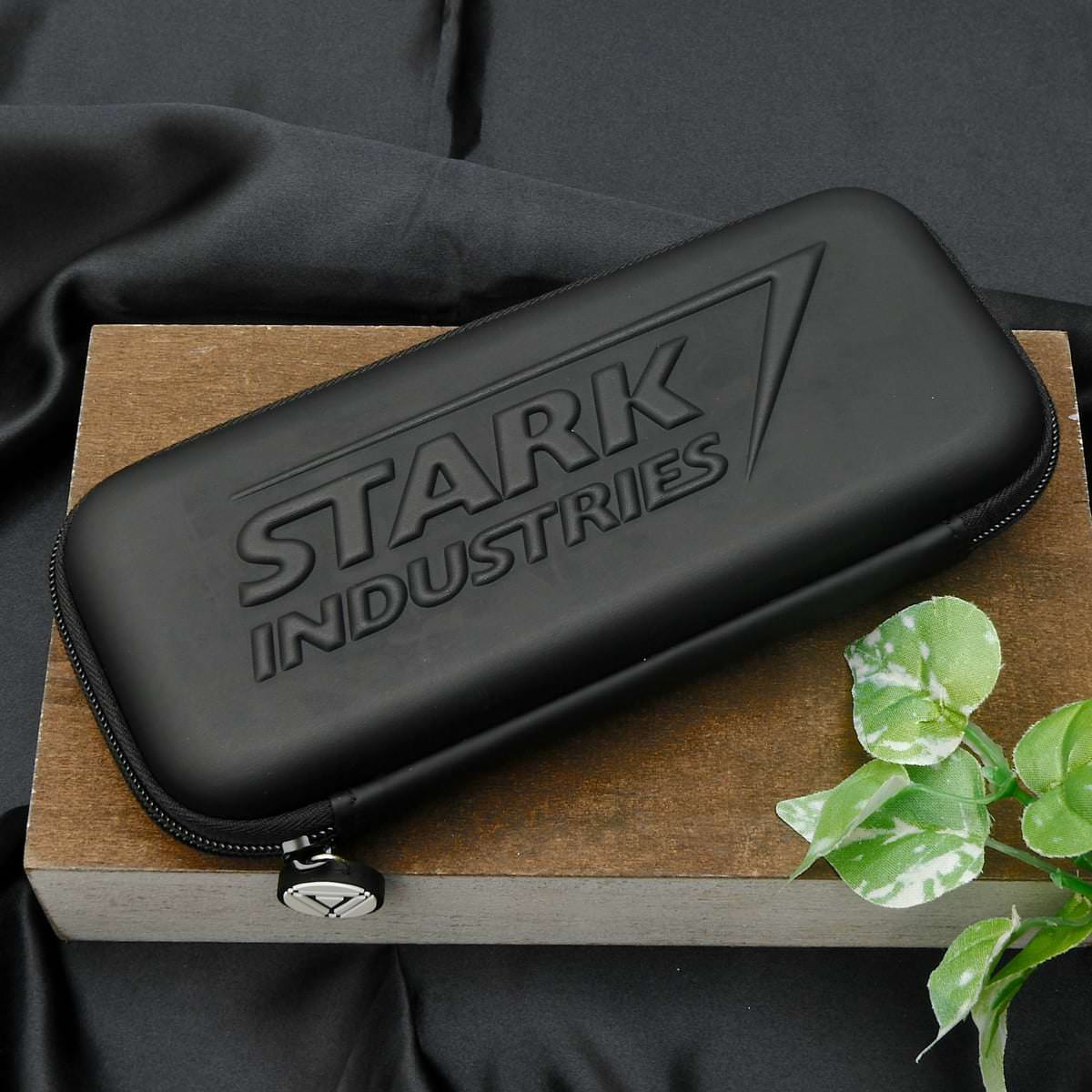 ケース中央には立体的にデザインされた「スターク・インダストリーズ」のロゴが大きく配置されています。