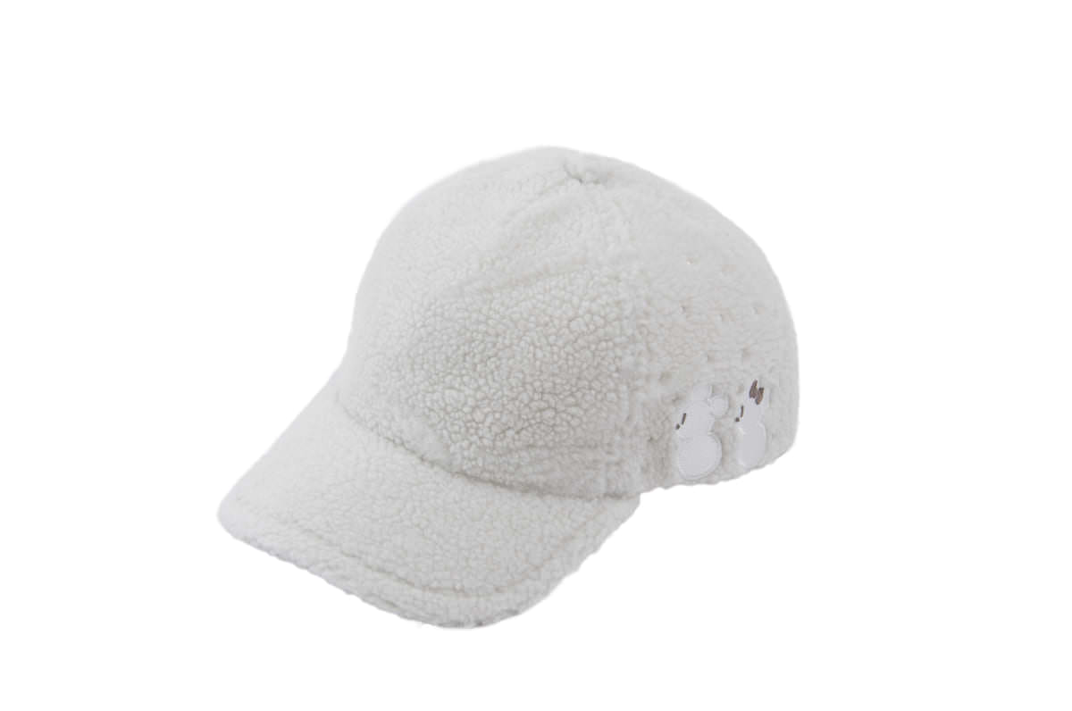 さりげないデザインで、雪をイメージしたモコモコの「キャップ」
