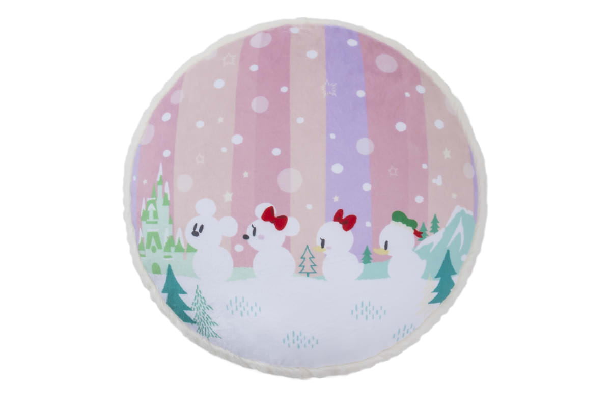ウラ面にはキラキラ舞い散る雪の中を行進する「スノーミッキー」たちが描かれた、プレゼントにもピッタリなクッションです☆