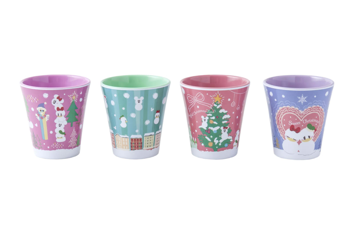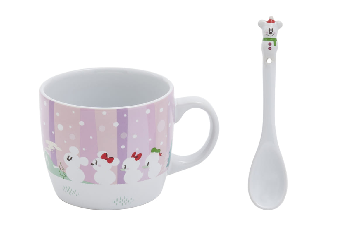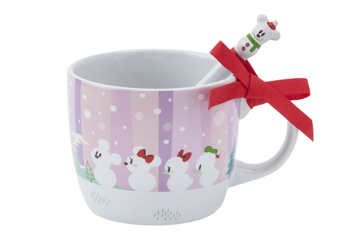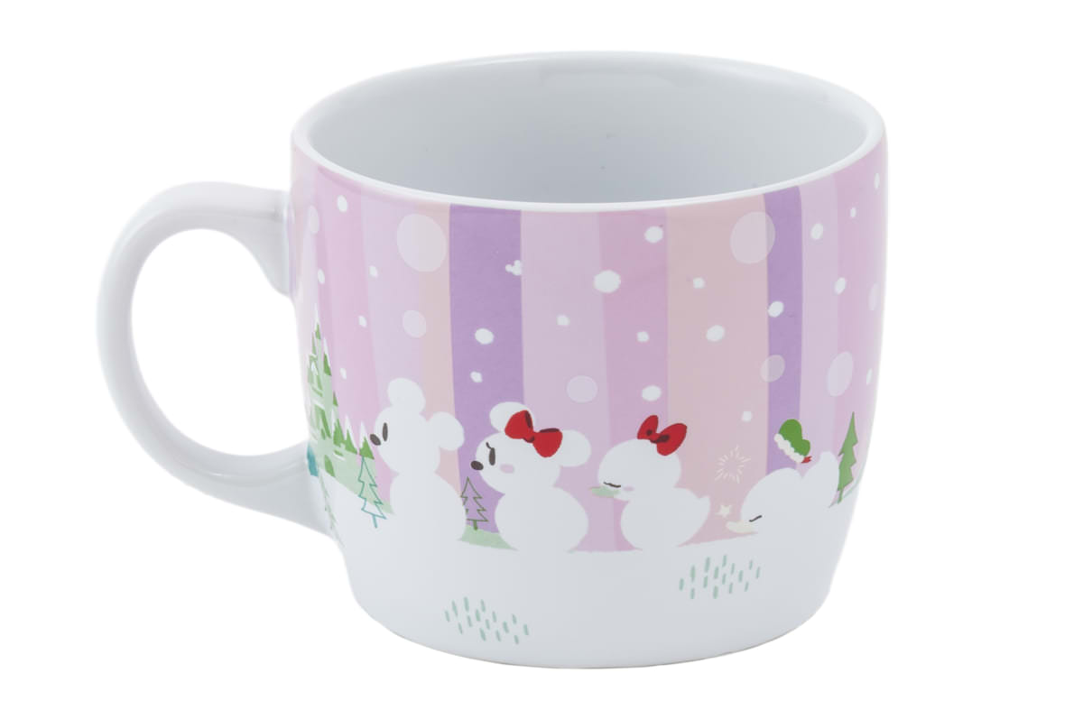 カップには「スノーミッキー」たちが雪道を行進するアートが採用されています。