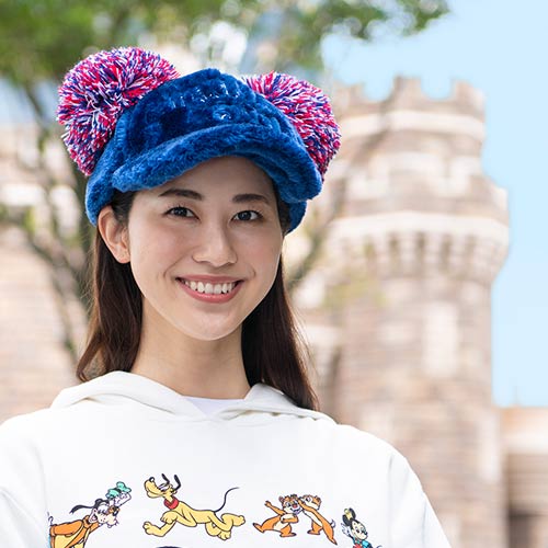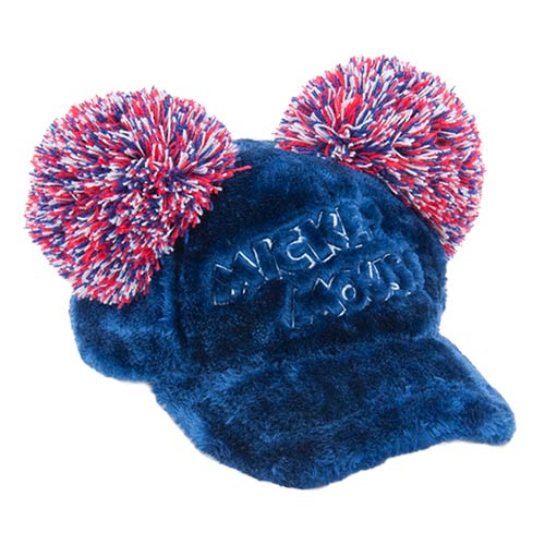 「ミッキーマウス」の耳のような大ぶりなポンポンつきのキャップ。