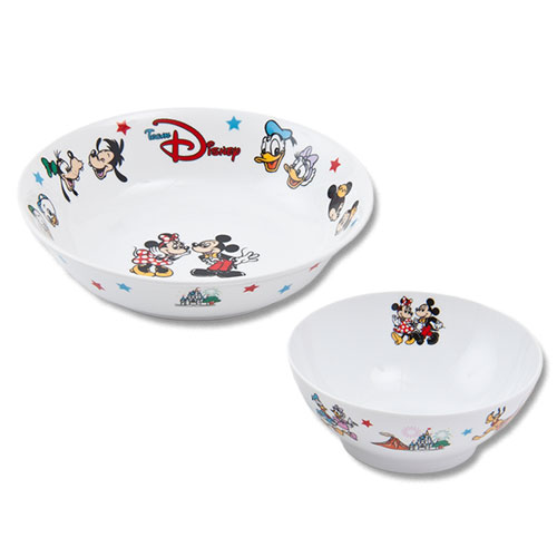 食器には、「ミッキーマウス」はじめディズニーの仲間たちのほか、シンデレラ城やプロメテウス火山のデザインも。