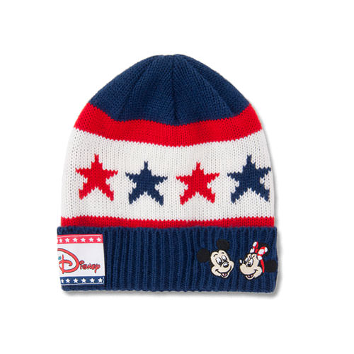 赤と青の星が目を引くキャップニット。