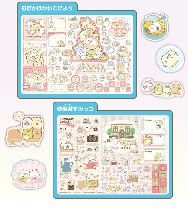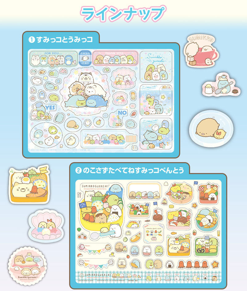 すみっコぐらしの人気テーマから、全部で4種類のシールが登場!
