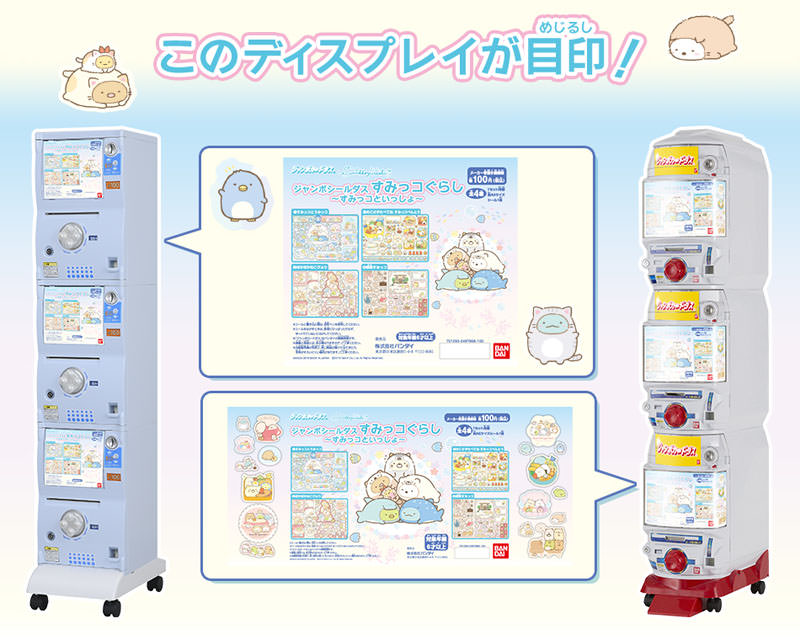「ジャンボシールダス すみっコぐらし~すみっコといっしょ~」は、全国の玩具売場などのジャンボカードダス自販機にて販売中です。