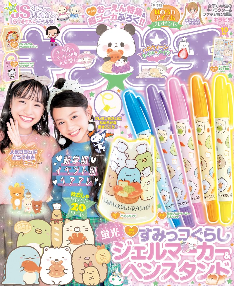 「すみっコぐらし」の蛍光ジェルマーカーとペンスタンドが付録の「キラピチ 2019年10月号」が、書店などにて販売中です。