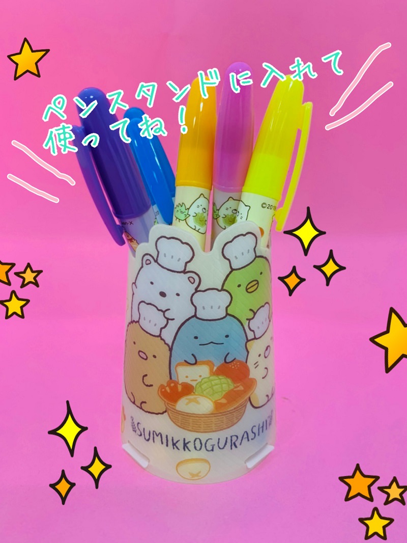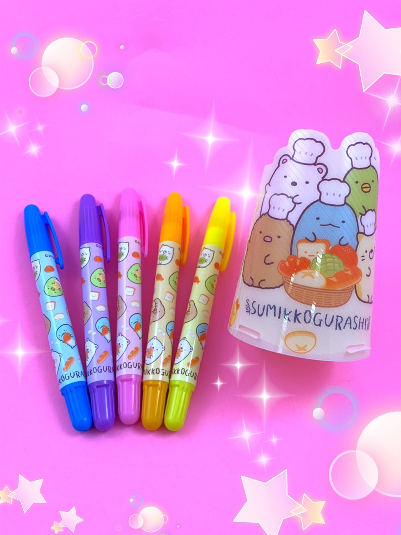 小学生の女の子のための、おしゃれ&キャラクター情報雑誌「キラピチ」に「すみっコぐらし」の「蛍光ジェルマーカー」と「ペンスタンド」が付録としてついてきます。
