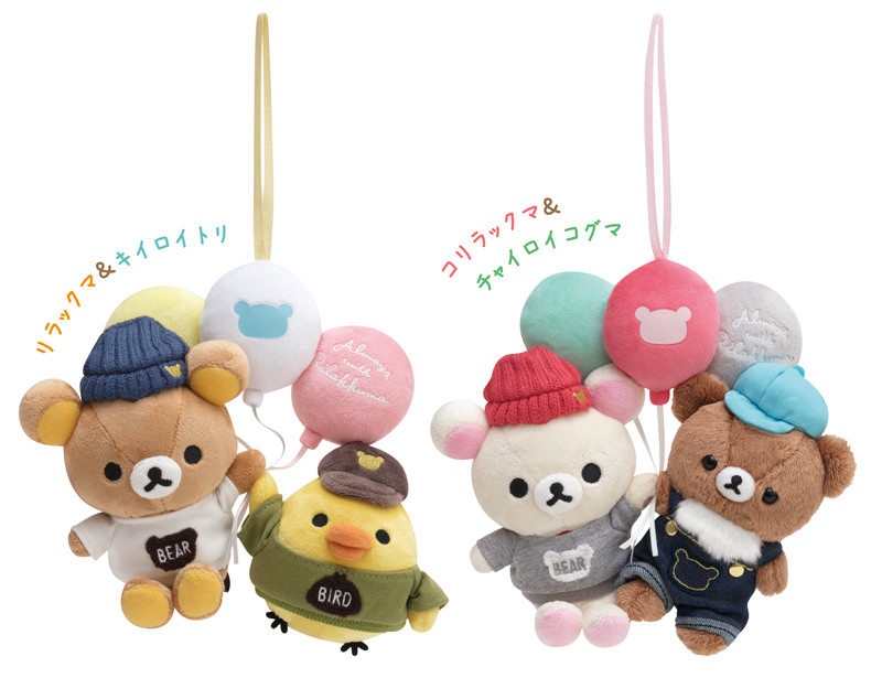 コーヒータンブラーに入ったリラックマがユニークな「おでかけリラックマ」と、「リラックマ&キイロイトリ」と「コリラックマ&チャイロイコグマ」が仲良く風船を持っている「なかよしぬいぐるみ」です。