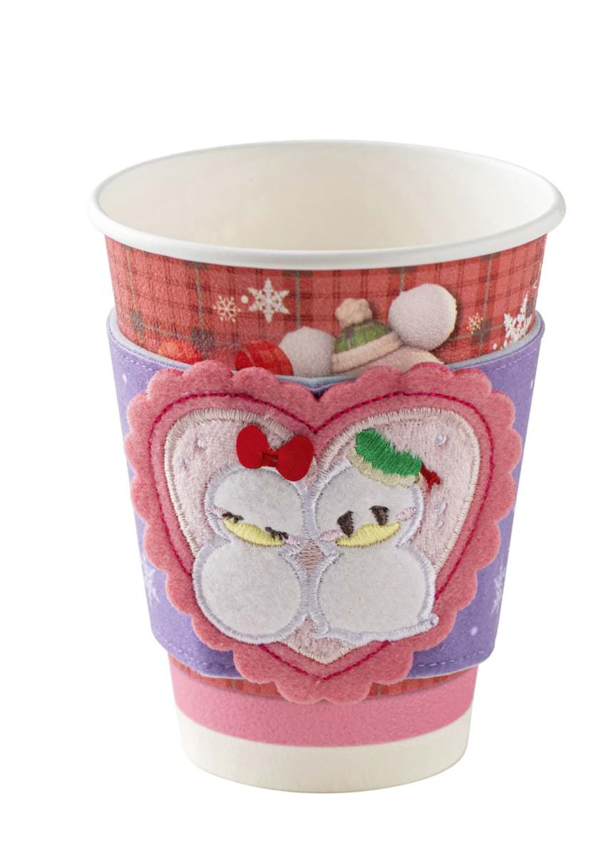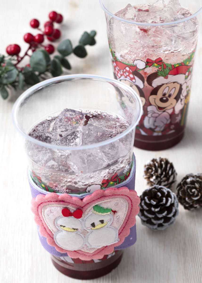 ドリンクメニューの「アップル&シナモンのホットドリンク」と「スパークリングタピオカドリンク(ミックスベリー)」販売店舗にて提供される「スーベニアスリーブ」
