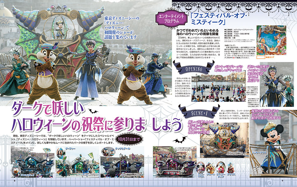 ついにスタートしたショーやパレード、メニュー、そしてゲストのみなさんのディズニー仮装などが誌上レポートされています。