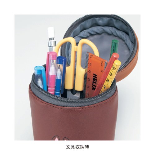 文房具やコスメの収納などいろいろ使えて便利な筒型のポーチ。