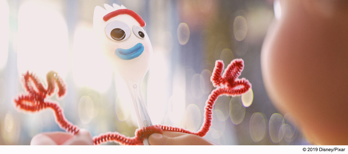 ボニーは、ウッディがゴミ箱から拾い上げた先割れスプーンやアイスの棒、紙粘土などの材料を使って、新しいおもちゃ、「フォーキー」を作り上げたのです!