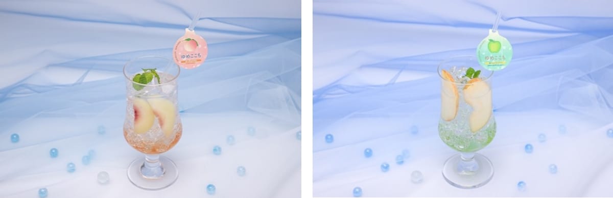 ゆめここち ピーチソーダ(左)、ゆめここち 青りんごソーダ(右)