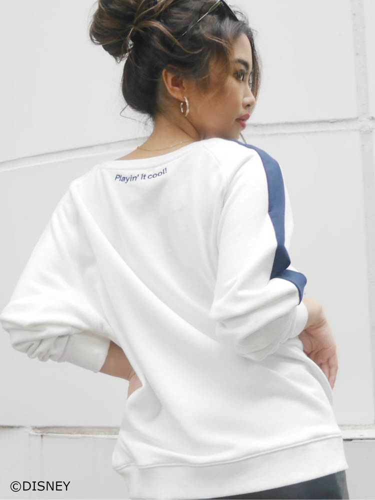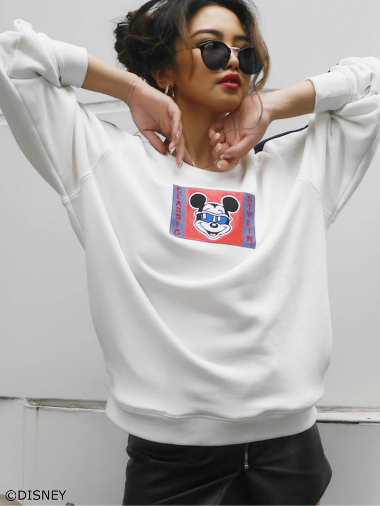 胸元に入った陽気な雰囲気の「ミッキーマウス」の刺繍がかわいらしい「ラインプルオーバー」