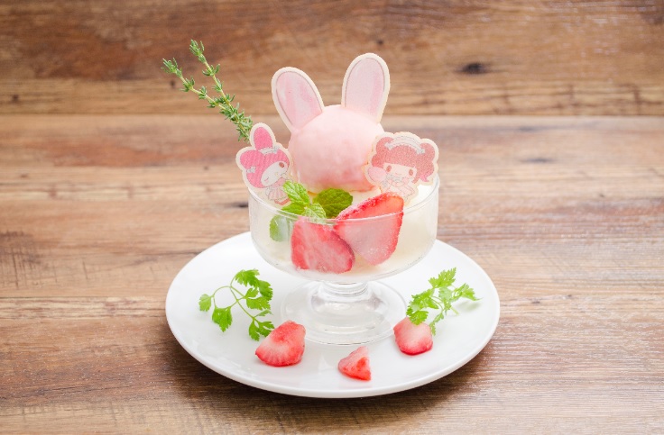 スライスイチゴが盛り込まれた「すわわとマイメロディのなかよしアイスサンデー」
