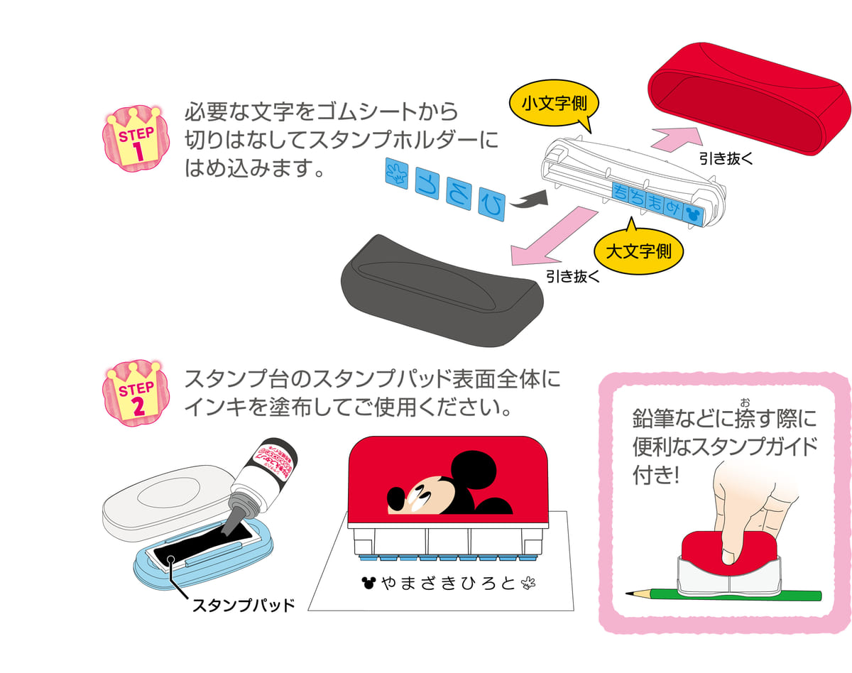 入園・入学準備に欠かせないお子さんの持ち物への名前書きが簡単にできるスタンプセット、ディズニーキャラクターシリーズ「おなまえスタンプ」