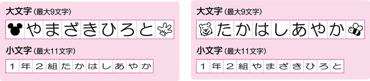 お名前に「ミッキーマウス」や「プーさん」のイラストをプラスするだけで周りのお友達と差がつきますね。