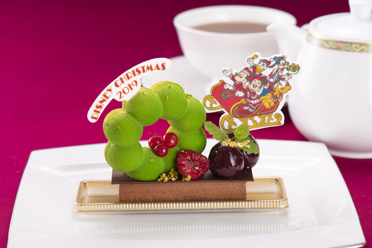 “ディズニー・クリスマス2019”の限定メニューは、クリスマスリースモチーフのケーキセットです☆