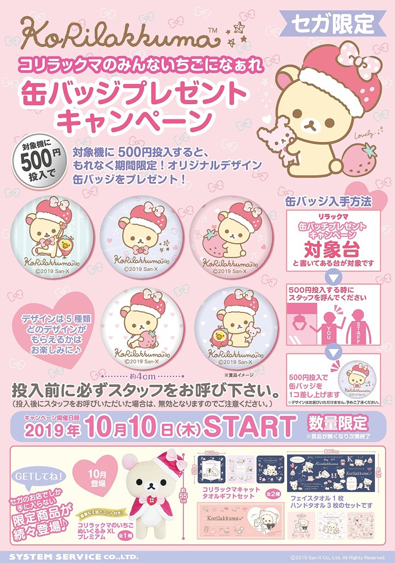 セガ限定「コリラックマのみんないちごになぁれ 缶バッジプレゼントキャンペーン」