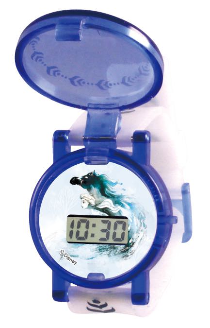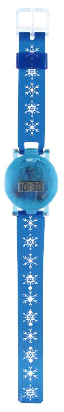 ベルトに雪の結晶のモチーフをあしらった「エルサ」デザインの腕時計。