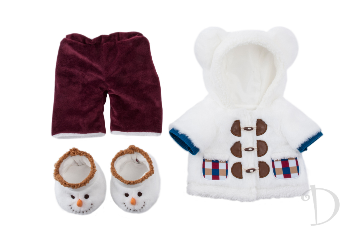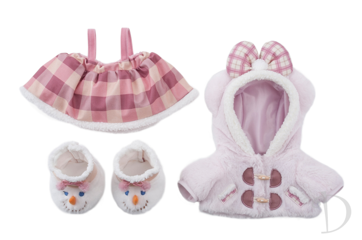 ダッフィー、シェリーメイ、ジェラトーニ、ステラ・ルーが冬のケープコッドで雪遊びを楽しんでいるコスチュームも発売。