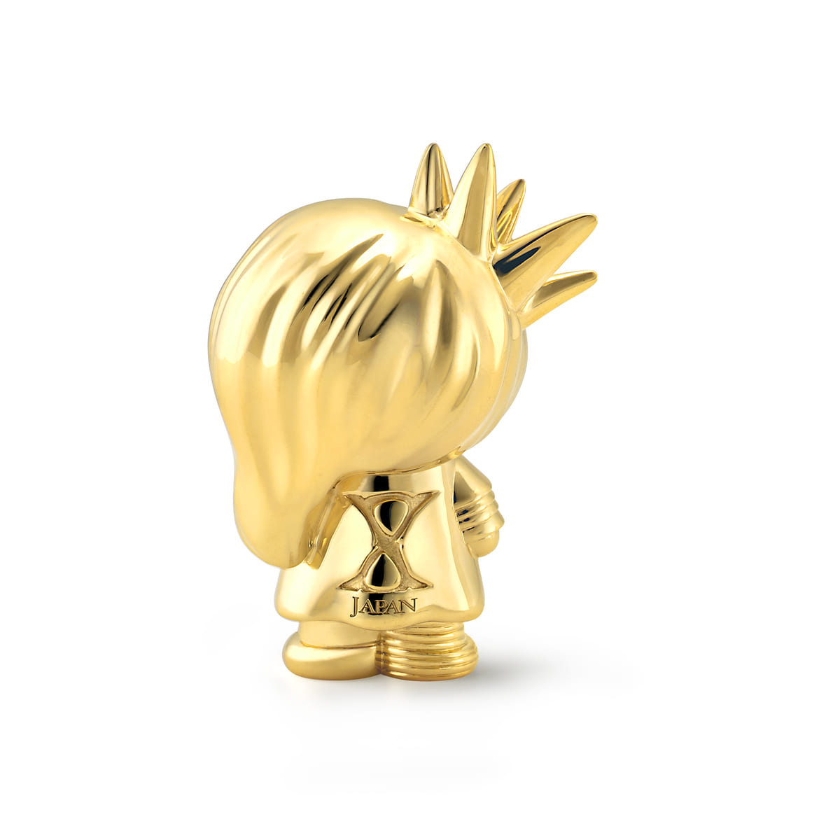 クロスのペンダントを着け、背面部分にはX JAPANのロゴが入るなど、細部にまでこだわって仕上げられた、ファン垂涎の逸品です。
