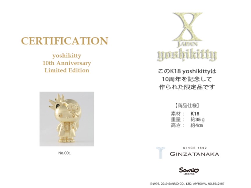 今回、誕生10周年を記念して、ギンザタナカより、ゴールドの「yoshikitty」が100個限定で登場です!
