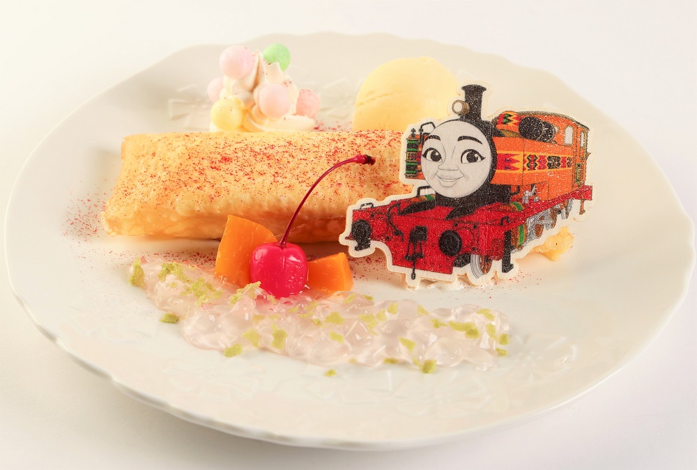期間中は青いボディのがんばりや「トーマス」や、力持ちで急行列車を引いているのが自慢の「ゴードン」、ソドー島のパトロールが仕事の「ハロルド」、新しい仲間のおんなのこきかんしゃ「ニア」などをモチーフにしたフードやデザートが提供されます。