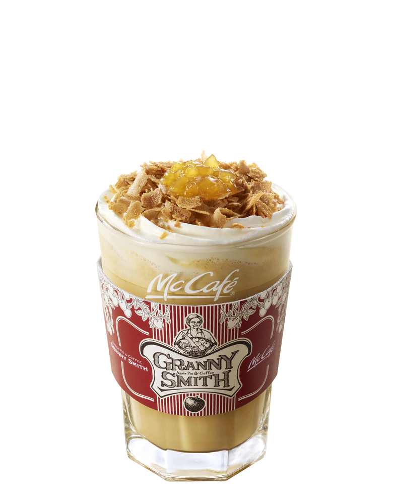 グラニースミスのアップルパイの風味をイメージしたシロップと、McCafé by Baristaご自慢のほろ苦いエスプレッソにふわふわにフォーミングしたあたたかいミルクを加えたホットドリンクです。