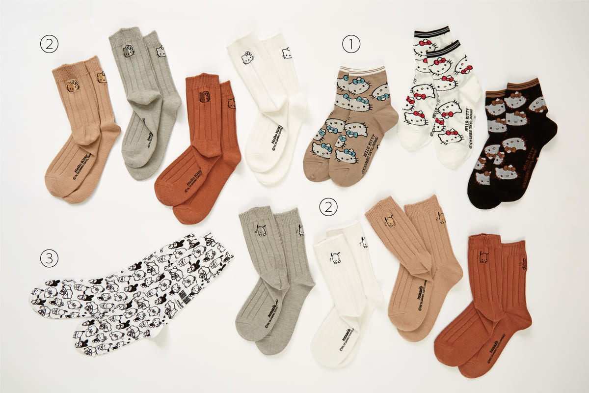 「ハローキティ」をレトロカラーで大人っぽく演出したコラボレーションソックス。