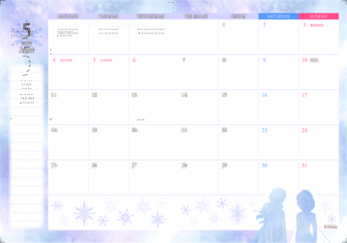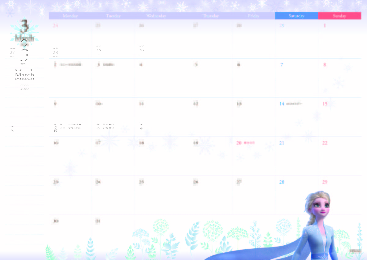 「エルサ」や「アナ」、「オラフ」が登場するフェミニンなカレンダー!