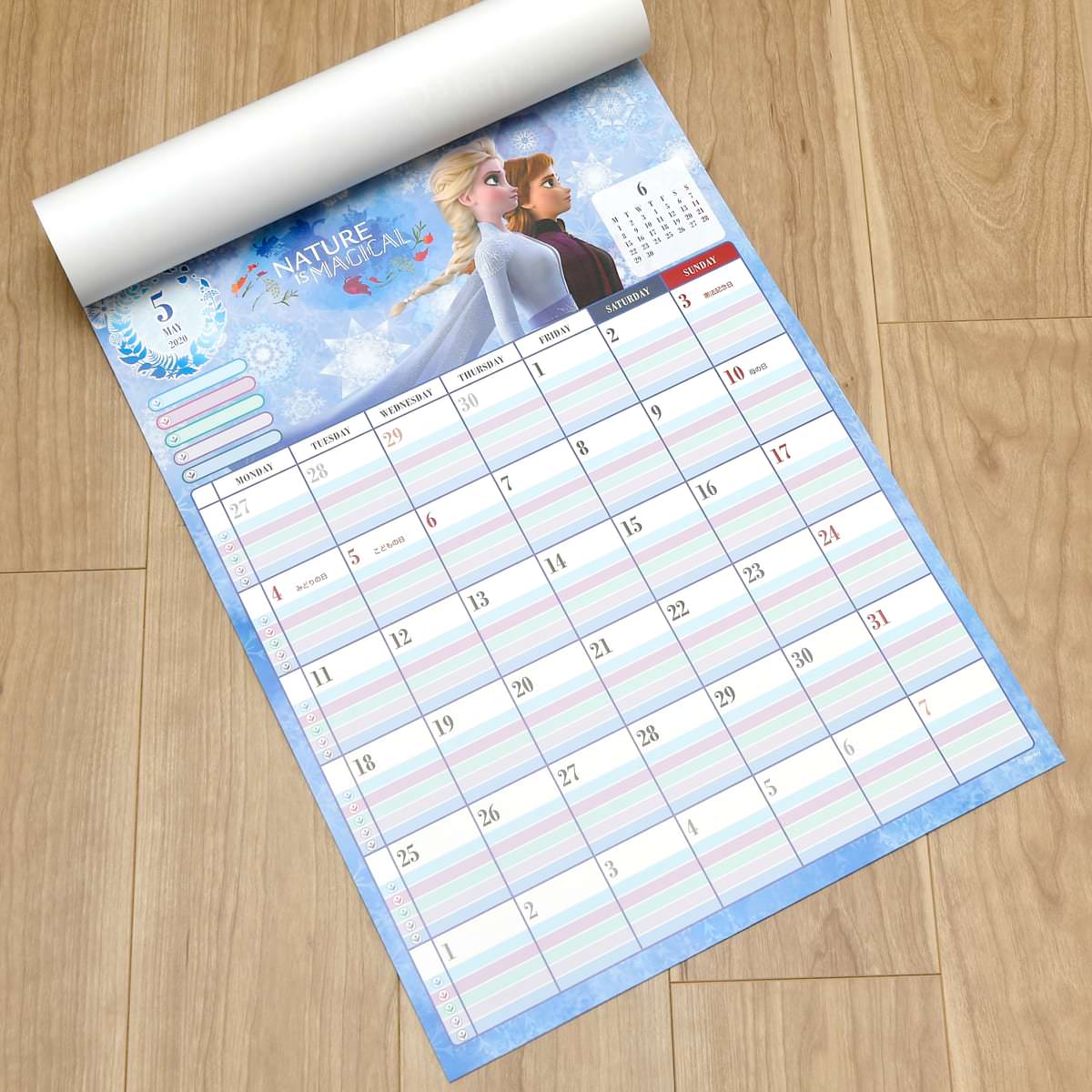 カレンダーは、両開きにしたページいっぱいにデザインされていて、とっても見やすい仕様。
