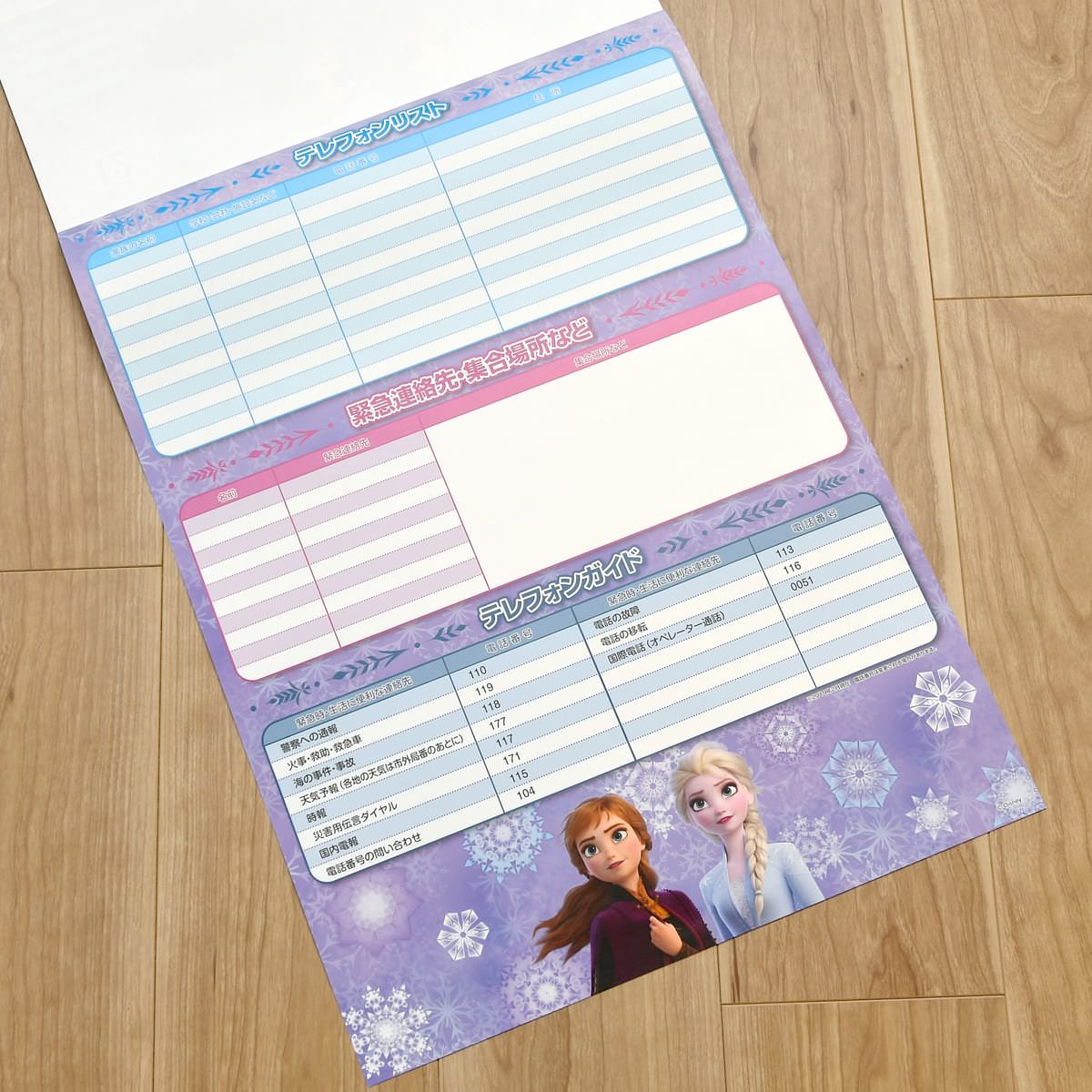 また、学校や勤務先などの緊急連絡先を記しておけるテレフォンリスト付きです。