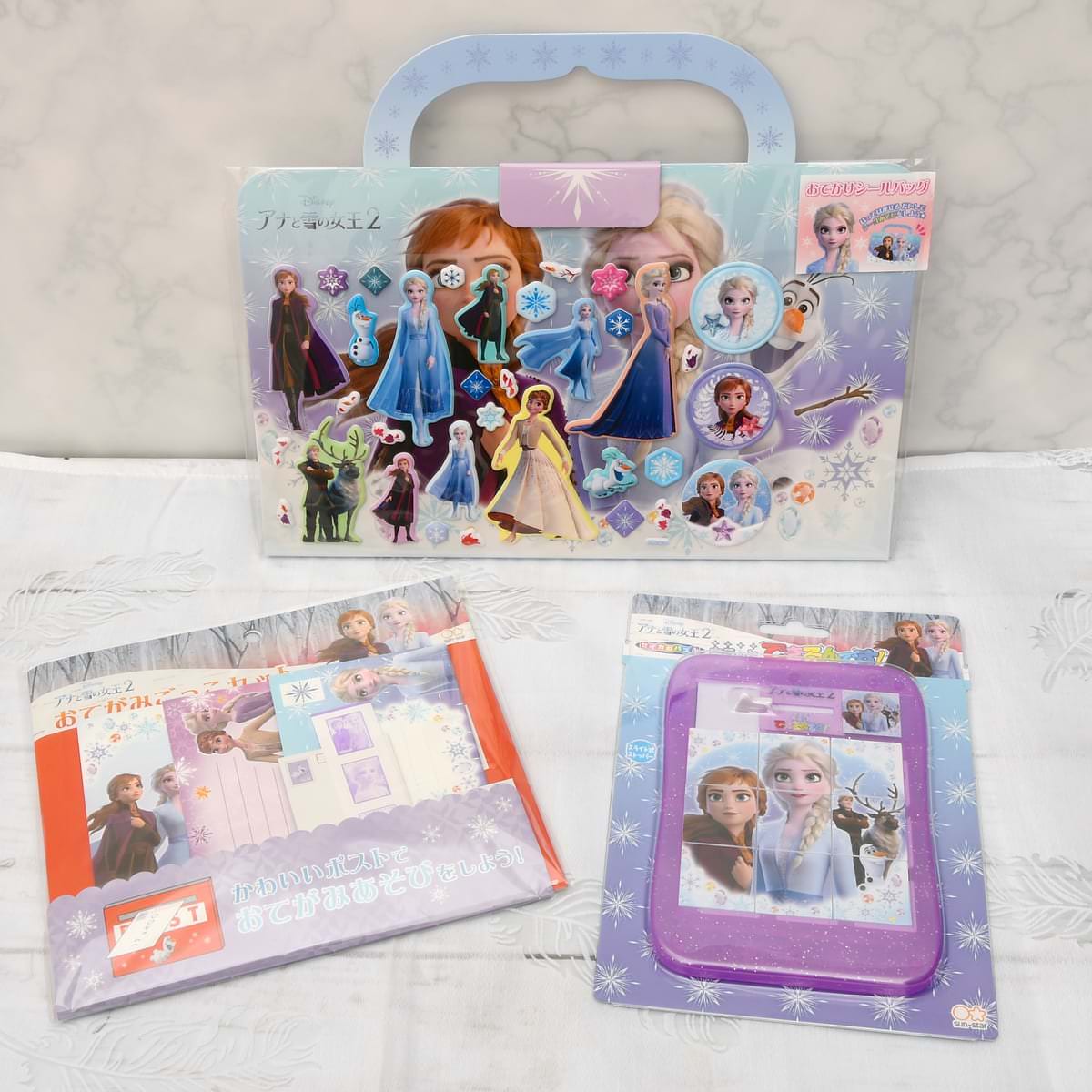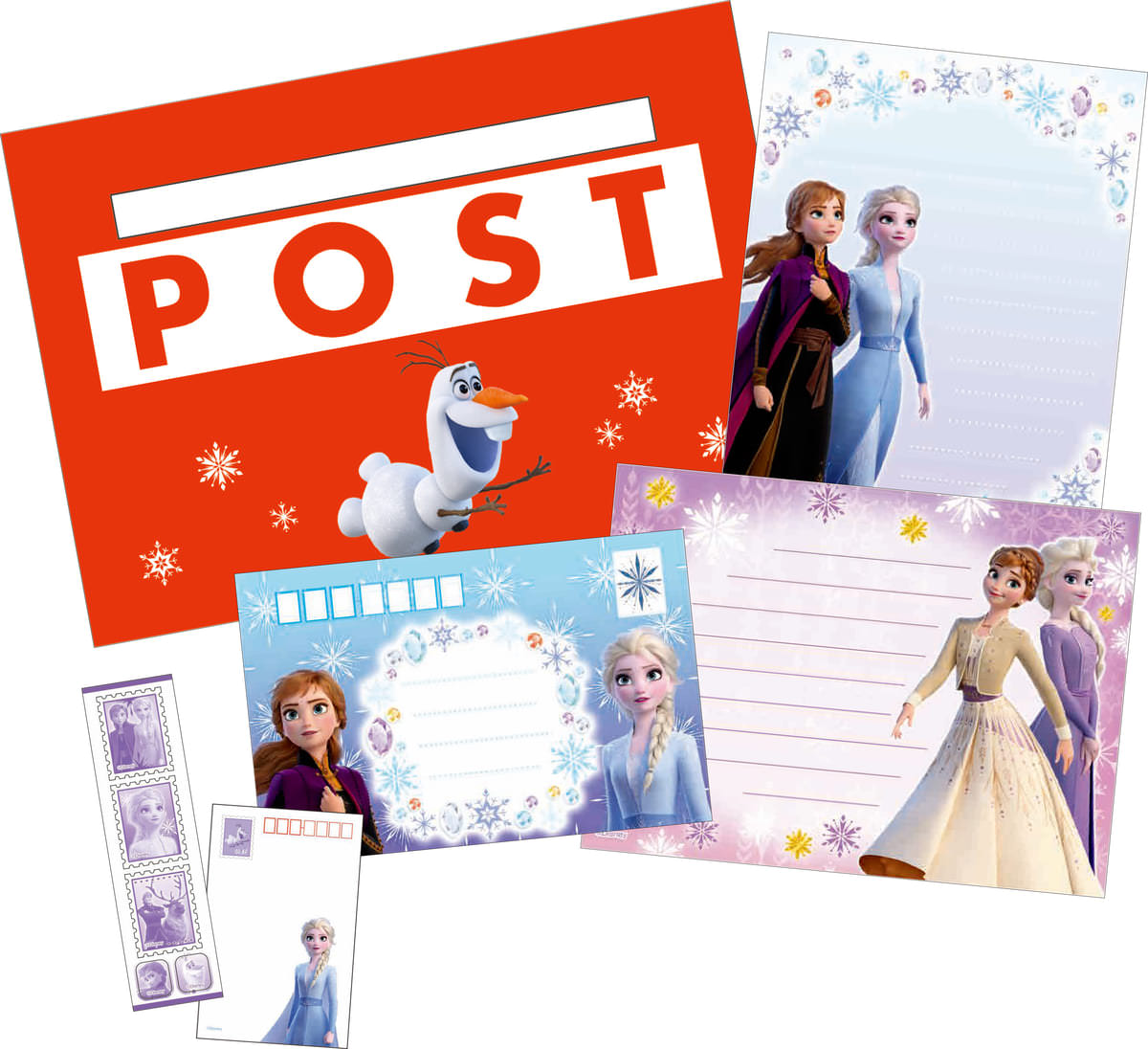 「おてがみごっこセット」は「アナ」や「エルサ」、「オラフ」たちの便箋や封筒がついています☆