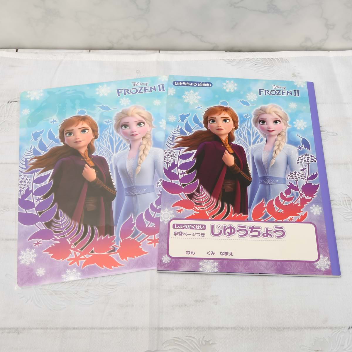 「アナ」と「エルサ」が大胆にデザインされた下敷は、裏面が方眼タイプ。