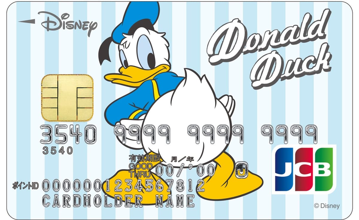 ポップなストライプ柄に「ドナルドダック」がプリントされた「ディズニー★JCBカード」