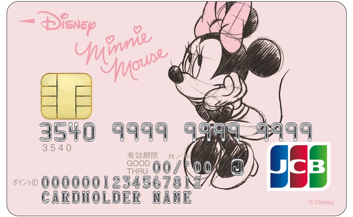 ペンシルタッチのアートで「ミニーマウス」が落とし込まれた「ディズニー★JCBカード」