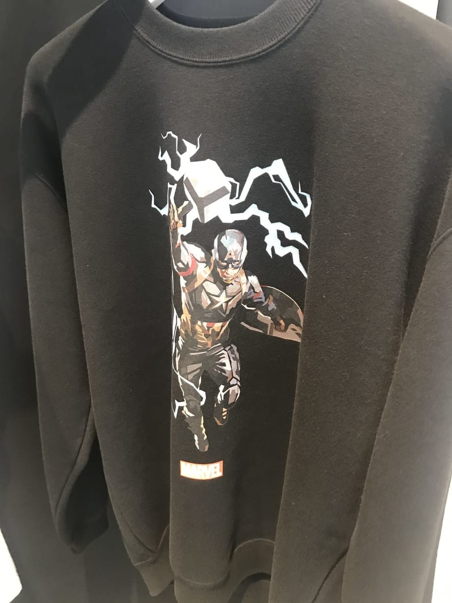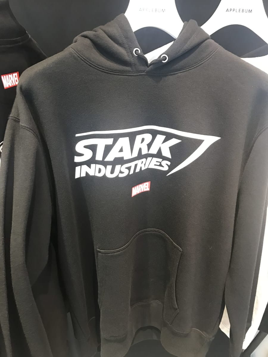 さらに、作品に登場したマーベル・ヒーローたちの顔写真がずらりと並んだTシャツや、「スターク・インダストリーズ」のロゴを使用したフーディーなどの秋冬ウェアなども登場。