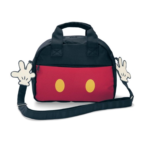 手でバッグを抱えているみたいなデザインがユニークな「ミッキーマウス」モチーフのミニボストンバッグ。