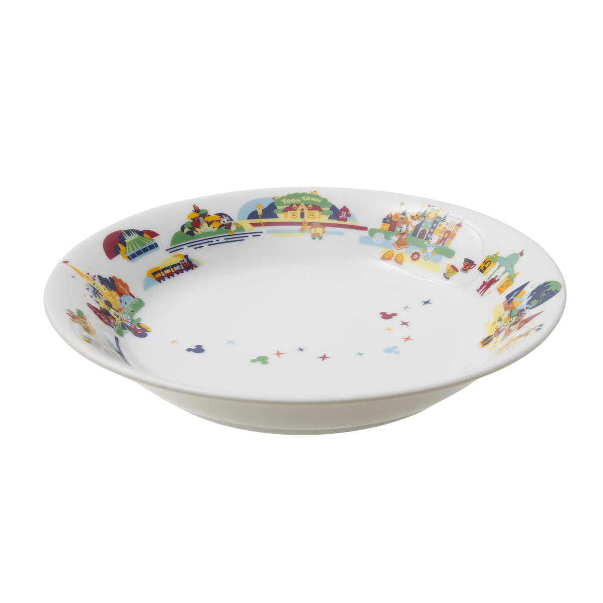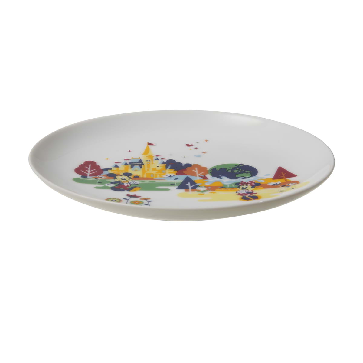 外周にパークのシンボルやアトラクションがデザインされたプレート。