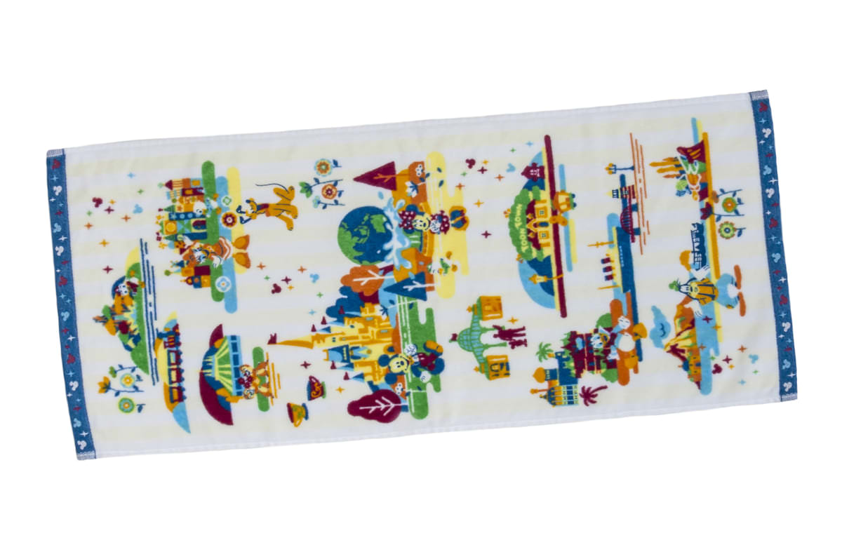 縁にカラフルなミッキーマークがデザインされたフェイスタオル。