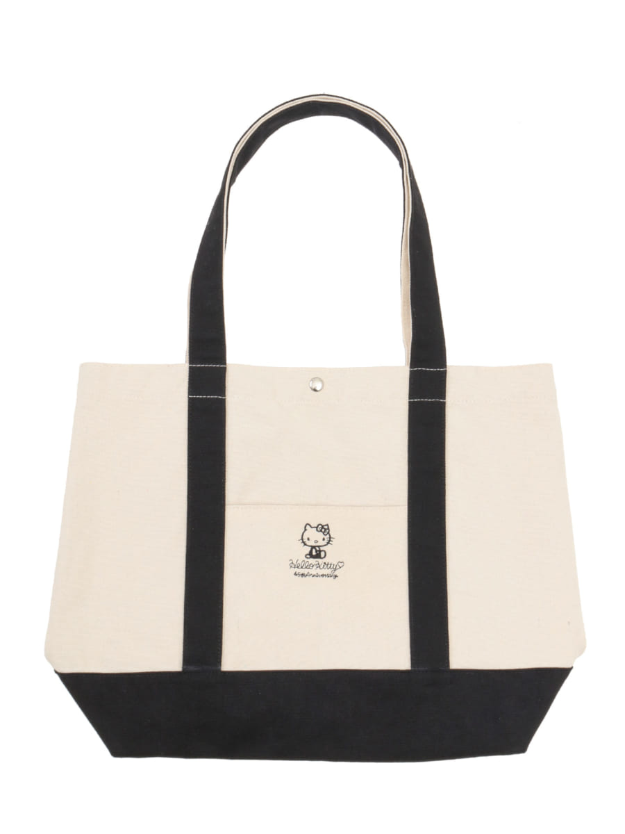 ポケットに「ハローキティ」と「タイニーチャム」の刺繍が入ったトートバッグです。