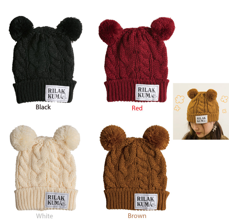 ベーシックなカラーとリラックマのラベルがおしゃれな、あったかもふもふのリラ耳付きのニット帽です☆