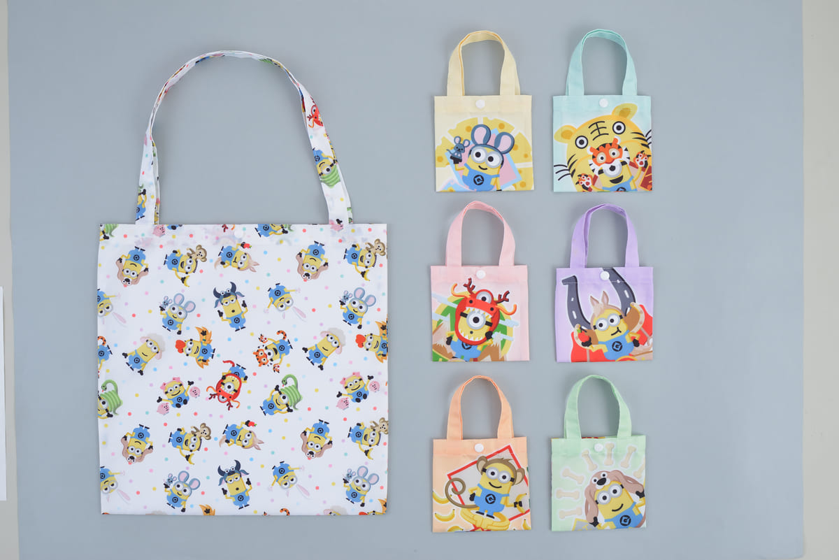 可愛い十二支デザインが入ったカラフルなエコバッグです。