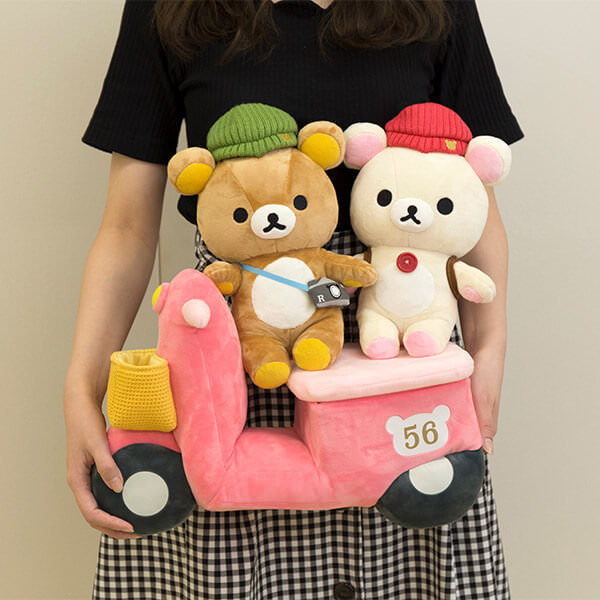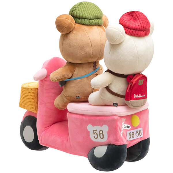 「リラックマ」と「コリラックマ」が、ピンクのスクーターで仲良くおでかけしているかわいいぬいぐるみセットです☆