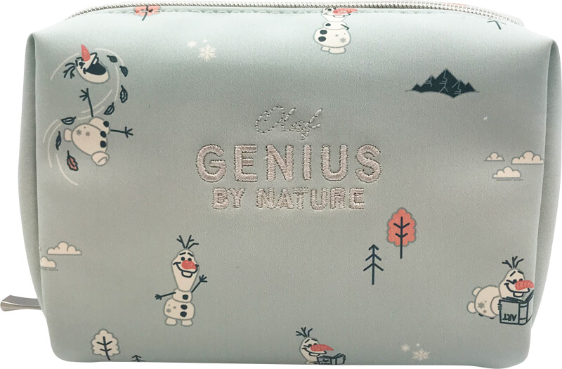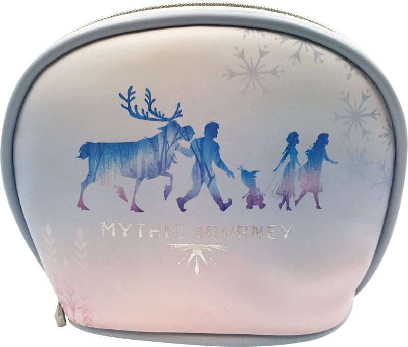 「アナ」、「エルサ」、「オラフ」、「クリストフ」、「スヴェン」のシルエットがデザインされたティッシュポーチ。