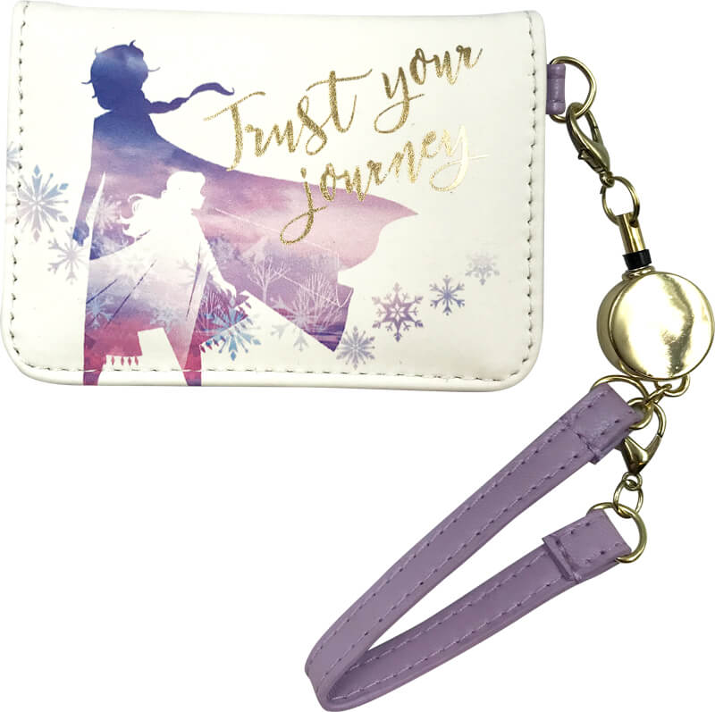 「エルサ」と「アナ」のシルエットがデザインされたパスケース。