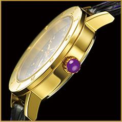 リュウズ・ベルト通しの紫の指し色など、こだわりのディテールが随所に施されています。